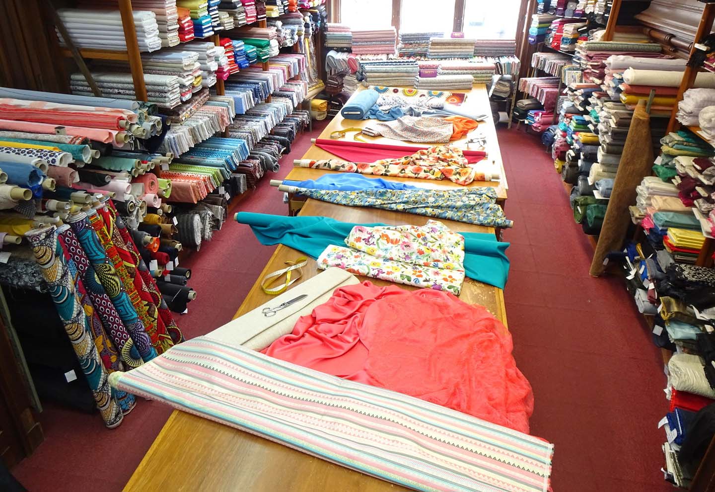 Les livraisons sur stock, en gros et au détail sont assurées sur place, au magasin ou par correspondance. Vous trouverez chez nous des tissus pour l'habillement homme, femme, enfant avec un très beau choix de tissus demi-saison, été, hiver, suivis toute l'année (soie, coton, Liberty, lin, double gaze, jean, polyester, laine, …).