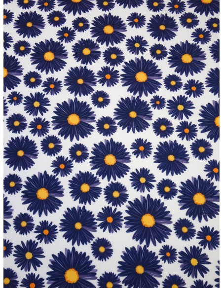 Tissu damassé motif fleurs - Bleu